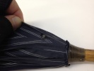 こちらは10年使っているカーボンファイバー製の16本骨の長傘です。 生地は折り目が汚れてはいますが、ご覧の通り張りは新品同様です。 エグリもしっかり残っています。これは、菅沢職人の張りです。